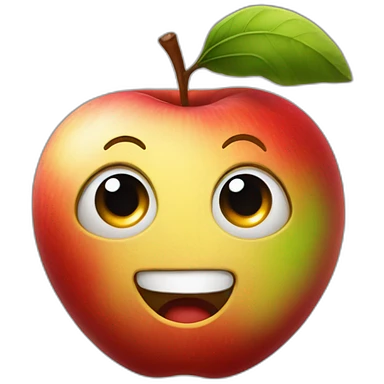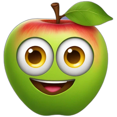 apple planet with a cartoon smirking with big courageous eyes which is circle shape emoji