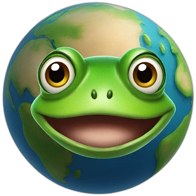 planet Earth with a cartoon frog face with big courageous eyes emoji