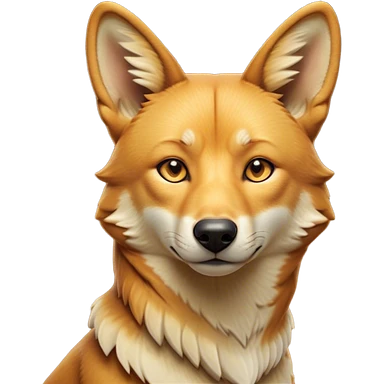 Cinematic Noble Dingo Portrait Emoji, Poised and regal, with a lean, agile build and a short, sandy-tawny fur that speaks of the wild outback, deep-set soulful amber eyes and alert ears, Simplified yet sharp and sophisticated features, highly detailed, glowing with a soft, dignified glow, high shine, intelligent and resourceful, stylized with an air of untamed elegance, focused and attentive, soft glowing outline, capturing the essence of a watchful and confident wild canine, so majestic it feels as though it could trot out of the screen with effortless authority! emoji