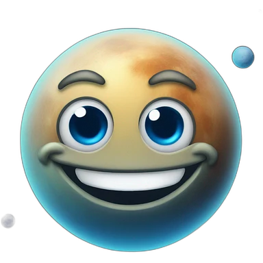 planet Neptune with a cartoon smiling face with big kind eyes emoji