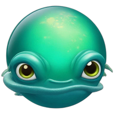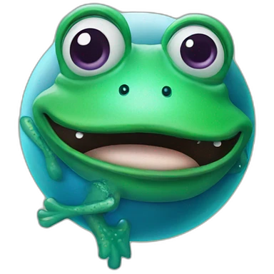planet Neptune with a cartoon frog face with big confident eyes emoji