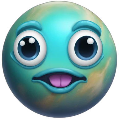 planet Neptune with a cartoon face with tongue emoji