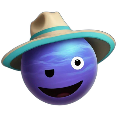planet Neptune with a cartoon cowboy hat and happy face emoji