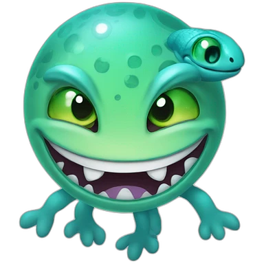 planet Neptune with a cartoon smiling lizard face with smiling eyes emoji