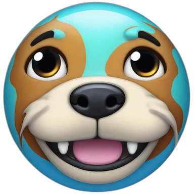 planet Neptune with a cartoon smiling dog face with smiling eyes emoji