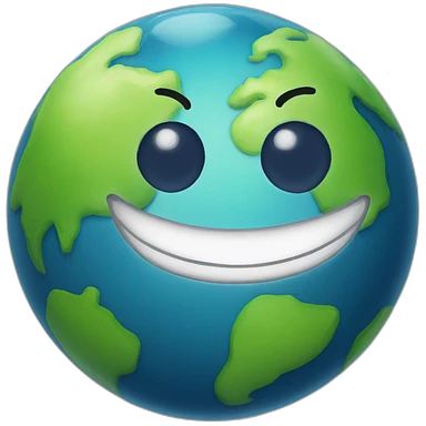planet earth with a cartoon beaming face with smiling eyes emoji