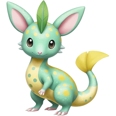 Pastel Colorful Tropical Exotic Blushing Spotted Dotted randomly Splash-marked Leavanny-Gallade-Ampharos-Inteleon-Nidoqueen-Fakémon-Pokémon-hybrid-fusion-creature, full body emoji