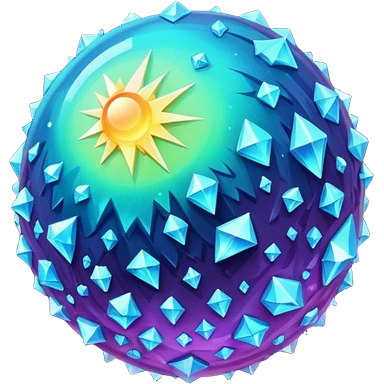 planet, surface covered in glowing crystals and mountain emoji