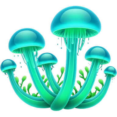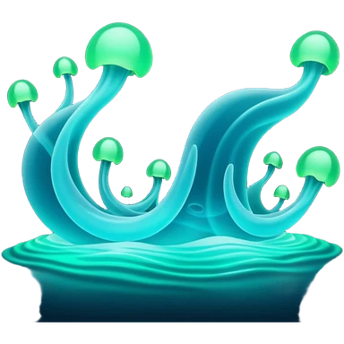 3D render of Plankton Wave, bioluminescent deep sea style, glowing neon blue and green lights, dark background to contrast the glow, translucent organic textures. emoji
