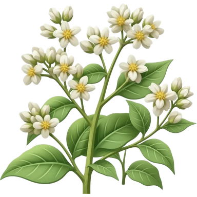 buckwheat grain plant with triangular seeds and small white flowers emoji