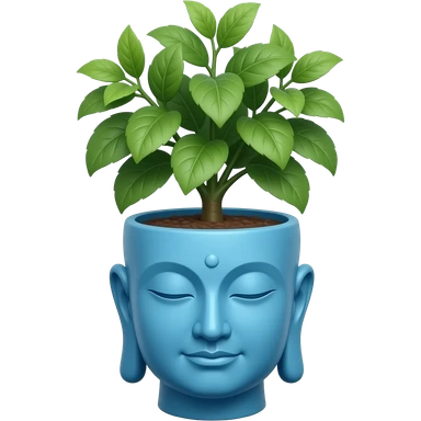 Plant in a blue Buddha head shaped pot emoji