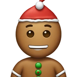A cute gingerbread cookie with a face and a Santa hat emoji