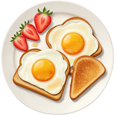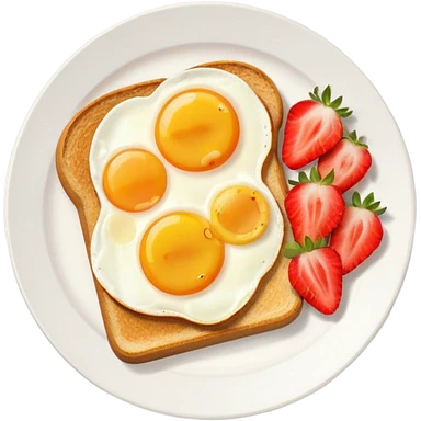 “Breakfast with two fried eggs, crispy bacon, and toast with butter, all arranged on a plate.” emoji