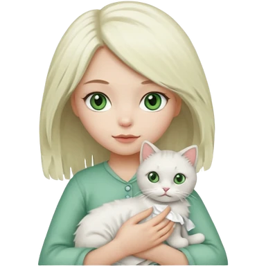 Platinum blonde hair girl with green eyes holding rag doll cat emoji | AI Emoji Generator