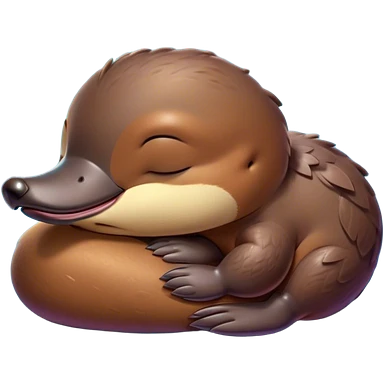 Meme-Worthy Cute Sleeping Platypus Portrait Emoji, Head resting peacefully with a contented smile, showcasing a unique, streamlined build and a luxuriously soft brown fur, eyes shut in a serene, restful float, Simplified yet hilariously adorable features, highly detailed, glowing with a soft, drowsy light, high shine, relaxed and utterly lovable, stylized with an air of playful laziness, bright and heartwarming, soft glowing outline, capturing the essence of a comically sleepy platypus, so meme‐worthy it feels like it could instantly become the next viral sensation of adorable slumber! emoji