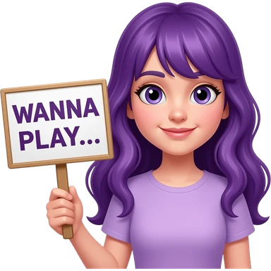 girl with long purple hair holding a WANNA PLAY... sign emoji