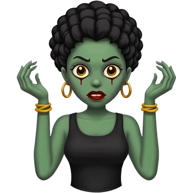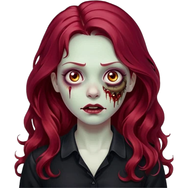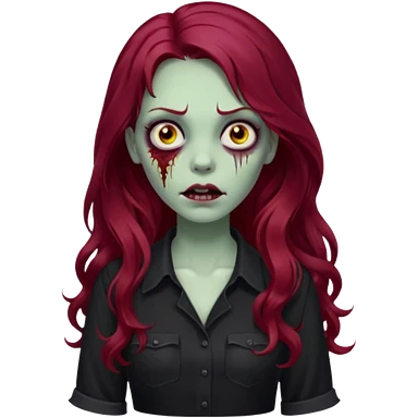 Faça me um emoji de um zumbi mulher de cabelos vermelho borgonha longos ondulado usando uma blusa preta emoji