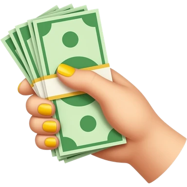 A pale hand with yellow nail polish, holding cash emoji