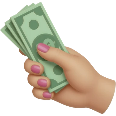 A pale hand with pink nail polish, holding cash emoji