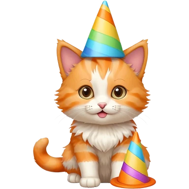 playful kitten with a colorful cone party hat emoji | AI Emoji Generator