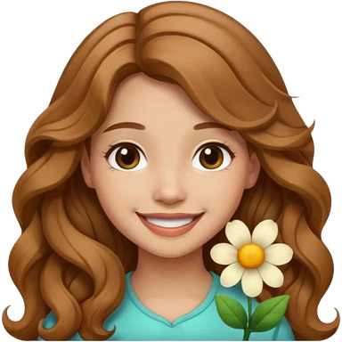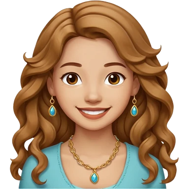 Please generate a portrait of a pretty girl with long, wavy, light brown hair., she's smiling. emoji