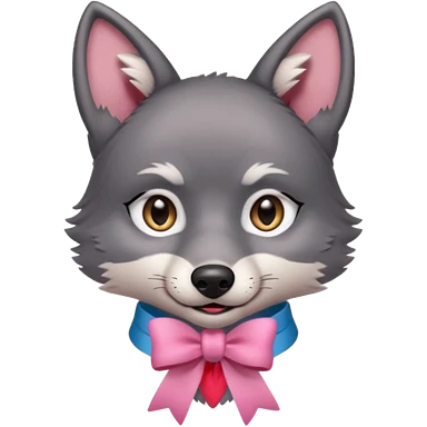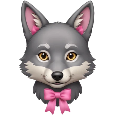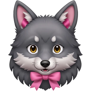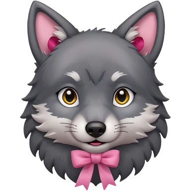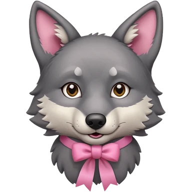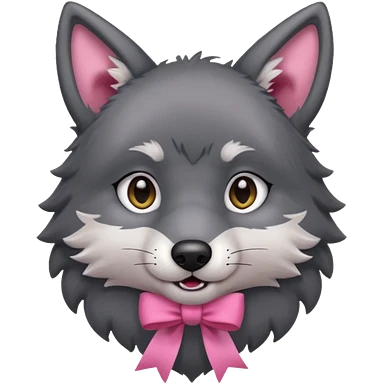 Pleading sad Face cute dark grey black wolf with a pink ribbon on his ear head emoji | AI Emoji Generator