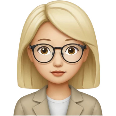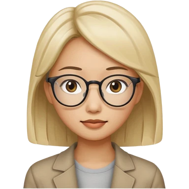 asian looking female with slight blonde hair a little longer with eye glasses, fair complexion not that pointed nose but slighty little eye please make the hair longer shoulder length emoji