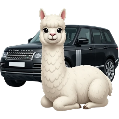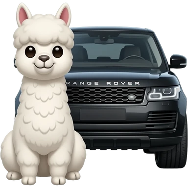 Alpaca emoji styled hair please white realistic alpaca funny face nobut cute with nice hair full body sat next to black range rover car cahnge the alpaca thata alpaca id so fake i dint like it emoji