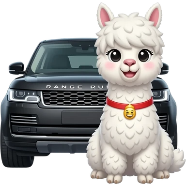 Alpaca emoji styled hair please white realistic alpaca funny face but cute with nice hair full body sat next to black range rover car cahnge the alpaca thata alpaca id so fake i dint like it emoji