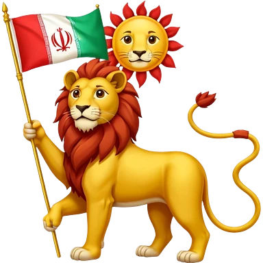 Please create a golden lion holding a curved sword with the half sun on top of the lion’s back? emoji