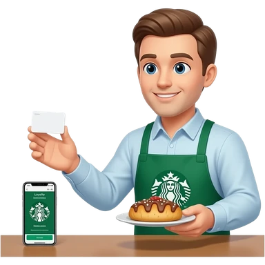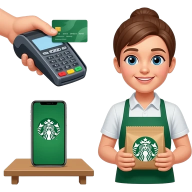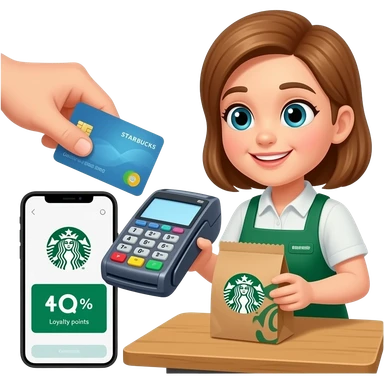 Please show hands of customer left hand they should be paying with their card, have their phone on the table with the starbucks loyalty point and the cahsier should be handing them a pastry emoji