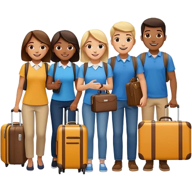 Please create an image of a young person departing overseas for employment. Set the scene as them pulling a suitcase toward the airp emoji | AI Emoji Generator
