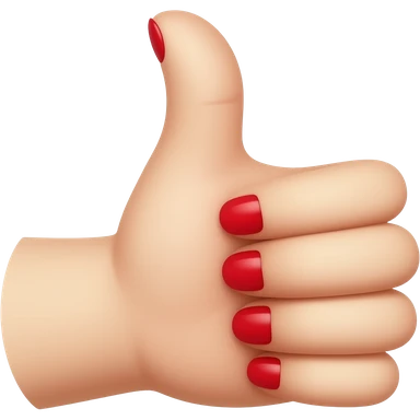 Please create a thumbs up emoji where the palm is facing the viewer and four fingers are closed over the palm with the thumb in the up position. There is red nail polish on the nails of the fingers and thumb. emoji