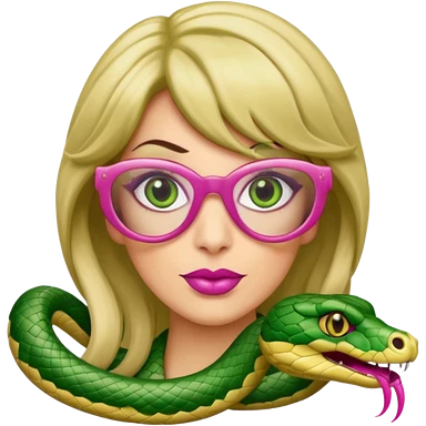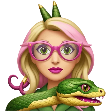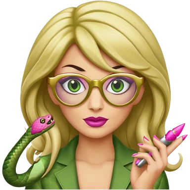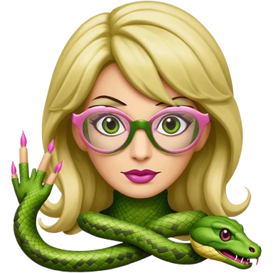 please create a snake with a bitchy evil face wearing a dark blonde wig and pink pointy nails and squared frame golden glasses emoji