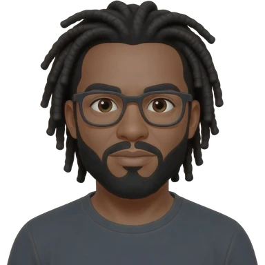 African American guy with black shoulder length dreads wearing glasses with separate beard and mustache emoji