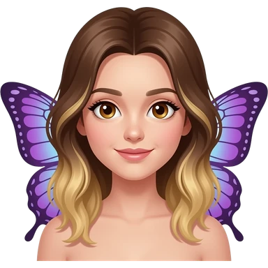 please make a blonde young woman with brown eyes and butterfly wings, the wings are purple emoji | AI Emoji Generator
