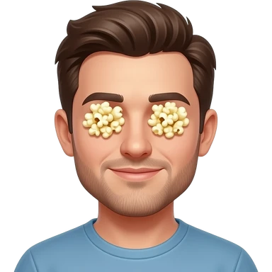 please make a emoji of a guy crying popcorn (instead of tears) from his eyes emoji | AI Emoji Generator