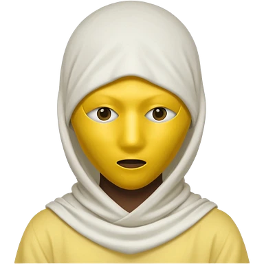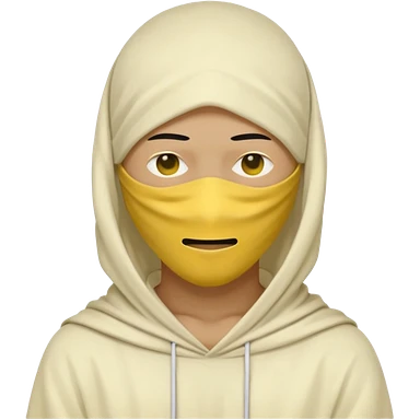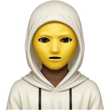masked yellow white skin figure with cloth overing head and face / rap style like yeat kinda cloth covering head and face. rap style and minimalistic and mysterious. no eyes a emoji