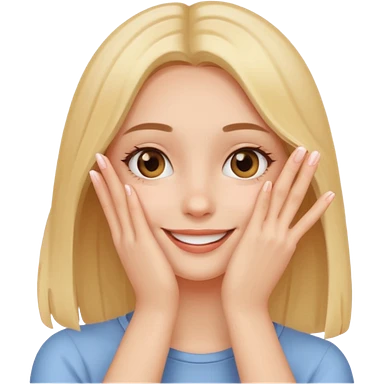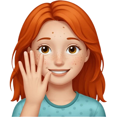 Привет, изобрази мне стикер где девочка прикрывает лицо одной рукой и улыбается emoji