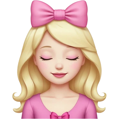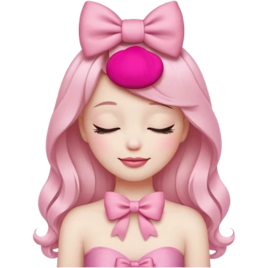 emoji coquette with a pink bow, closed eyes, confident smile, soft aesthetic emoji