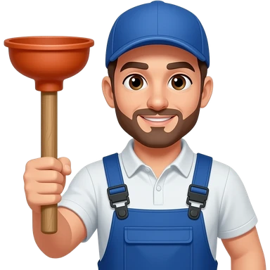 Plumber with black hair, glasses and blue eyes and salopette near kitchen sink emoji