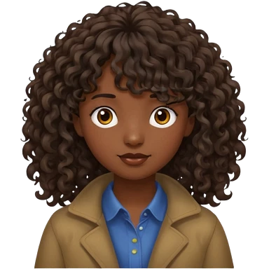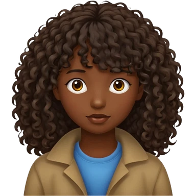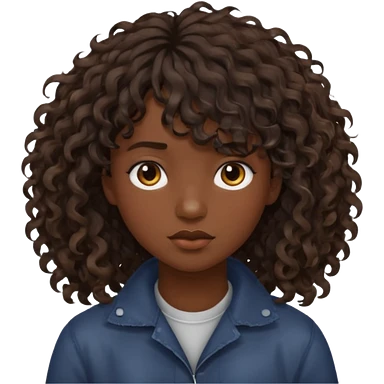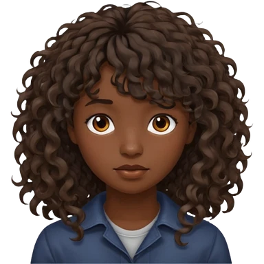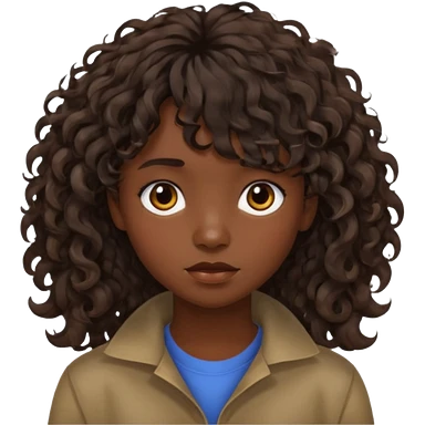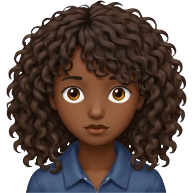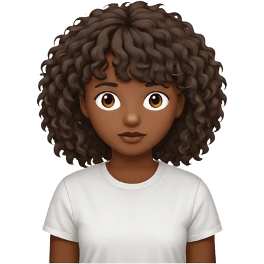 Fais la frange plus tordu la peau plus foncé et les cheveux bruns et bien plus long mais avec les cheveux bouclés fais la peau bien plus foncée et la frange vrm pas droite pas égal emoji