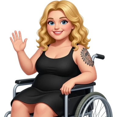 Plus size Blonde girl with blue eyes with black tattoos on right lower arm wearing a black summer dress with teal tulips and African American man with black hair with brown eyes NO facial hair wearing white shirt having fun together emoji | AI Emoji Generator