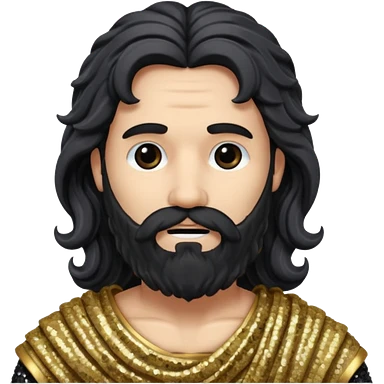 Pluto from Roman Deities with long black hair and beard, black sequin toga emoji | AI Emoji Generator