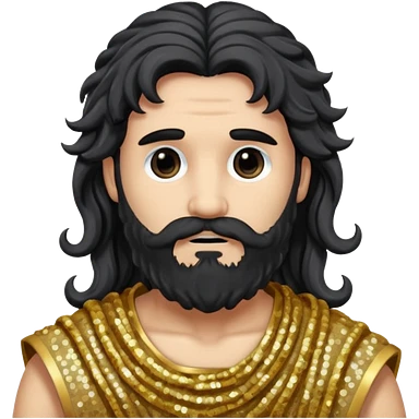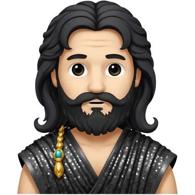 Pluto from Roman Deities with long black hair and beard , black sequin toga emoji