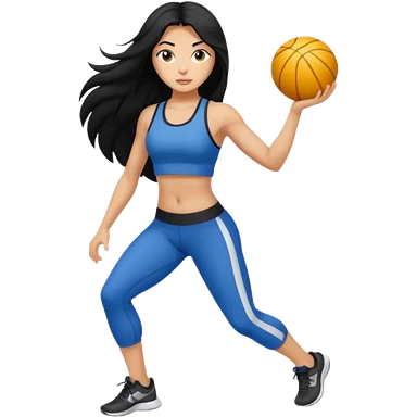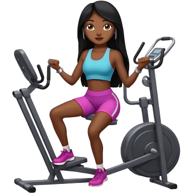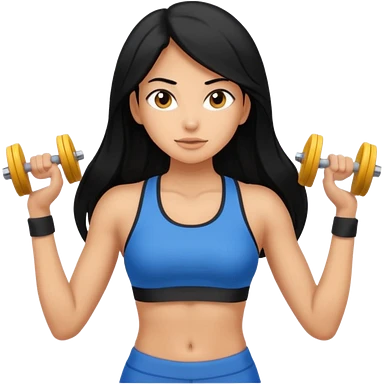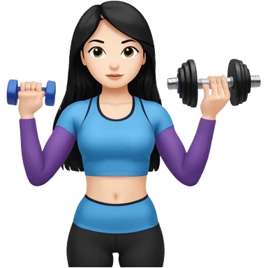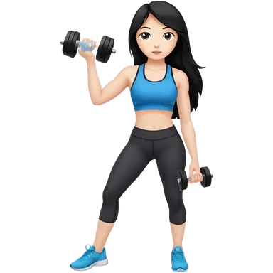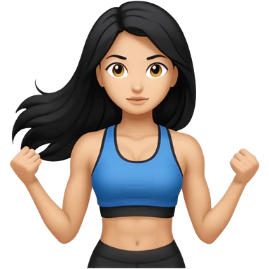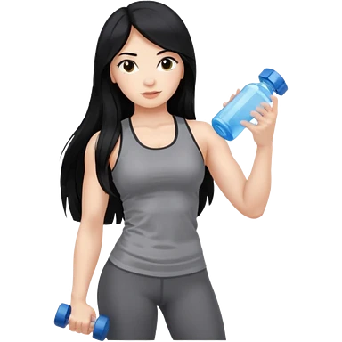 Long black hair girl with gym aesthetic, leggings with fitted shirt, with water bottle and dumble emoji