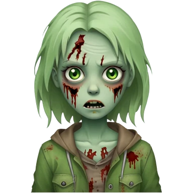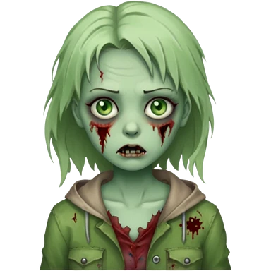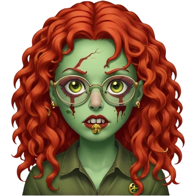 nonchalant zombie with long red curly hair, thick lashes, black square glasses, gold nose piercings on each side of her nose, and a gold eyebrow piercing. emoji