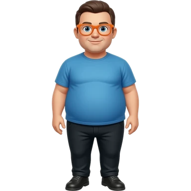 chico con camiseta azul pantalones negros pero con piernas zapatos i que tenga mas 18 años i que el chico sea gordo GAFAS de color naranja emoji