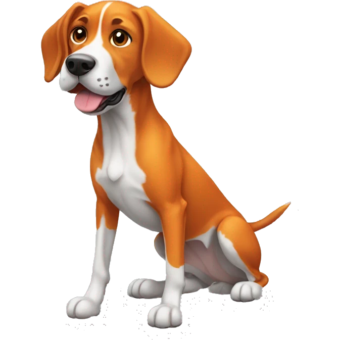 Brown German shorthair pointer with spot on back and neon orange collar emoji