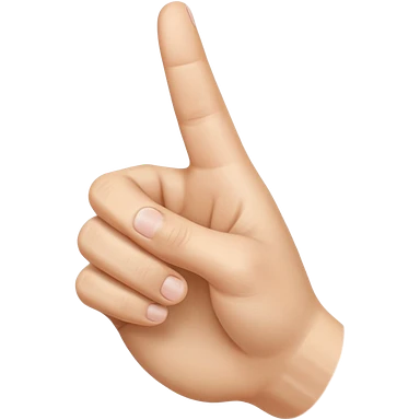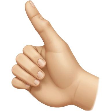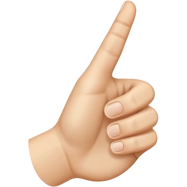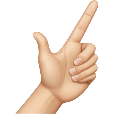A realistic close-up photo of a right hand entering the frame from the bottom right corner, back of the hand facing the camera, pointing diagonally upwards to the left with only the thumb and index finger extended in a finger gun or L-shape gesture, other fingers closed and tucked in. emoji